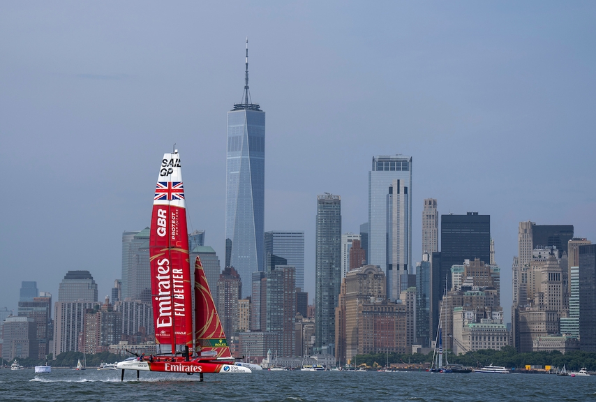 The Emirates Great Britain SailGP Team kicked off the Mubadala New York Sail Grand Prix in style on Saturday by dominating the fleet and winning the first race of the day. The British team pulled off an excellent start to race one and led the fleet to the first mark. Hitting speeds of 65km/h, Emirates GBR were able to sail their own race at the front of the pack and secure a big lead. The nine other teams were unable to catch the Brits, who kept their cool with seamless manoeuvres and crossed the finish line around five minutes before second place ROCKWOOL Denmark.