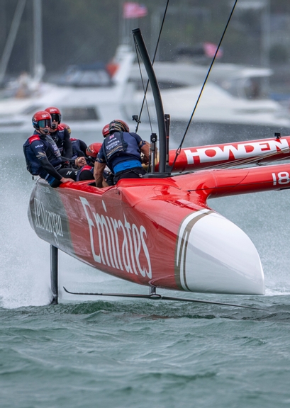 A fast and furious day of racing saw Emirates GBR drop off their foils in the pre-start and cross the line in ninth in challenging, shifty breeze conditions. Struggling for rhythm around the course, the team found themselves at the back of the fleet, finishing in 11th place.