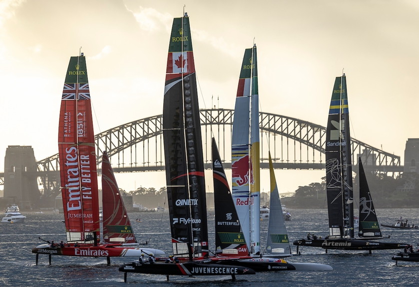 Light and patchy winds - unusual for Sydney at this time of year - meant teams were foiling at full speed one moment, and then parked up in desperate search of breeze the next.